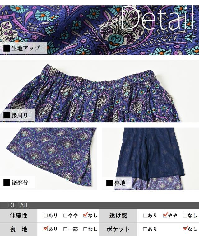 大きいサイズ レディース ワイドパンツ ロング丈 重ね着風 ウエストゴム 総柄プリント エスニック ボトムス M-LL/LL-3L/3L-4L ゆったりサイズ ぽっちゃり女子 プラスサイズ 4月30日10時までP5倍