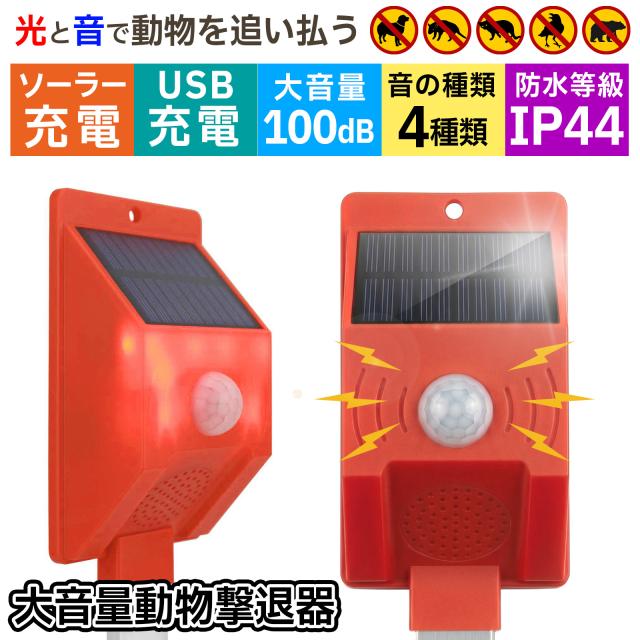 撃退器 猫 野良猫 撃退 猫よけ 100dB 警告音 LEDフラッシュ 光 音 ソーラー USB充電 カラス イノシシ