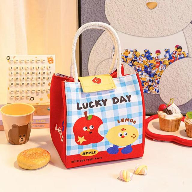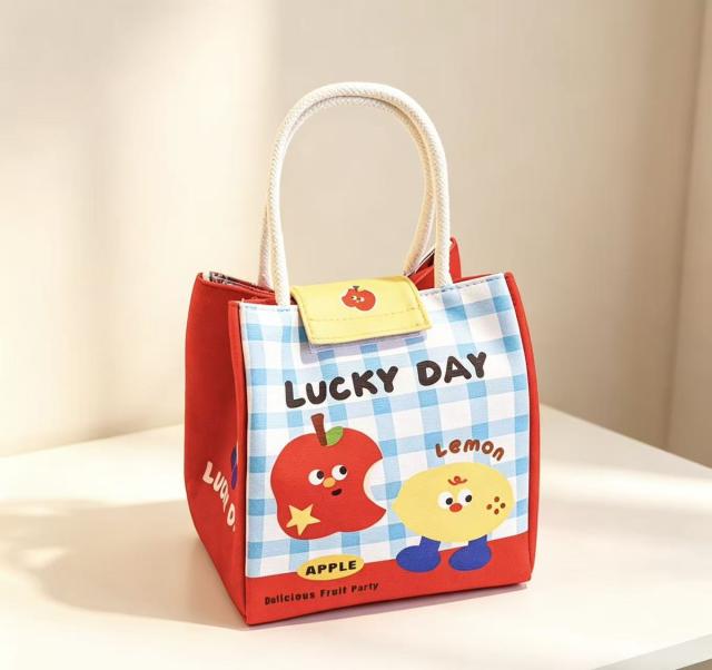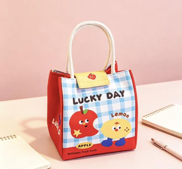りんごとレモンのキュートなキャラクターデザインが目を引き、毎日のランチタイムを華やかに彩ります。使いやすさと可愛さを両立した、毎日使いたくなるランチバッグです。