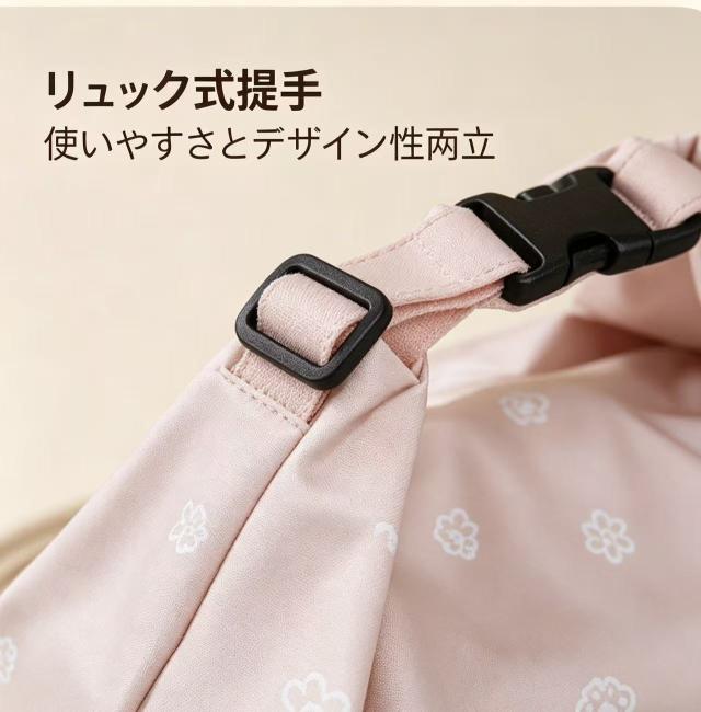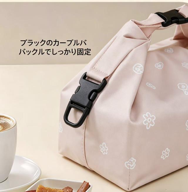 本体には繊細なお花のプリントを採用し、ピンクの柔らかなカラーが大人可愛い雰囲気を演出し、毎日のお弁当持ち運びを楽しくします。