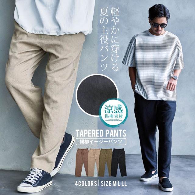 イージーパンツ メンズ ワイドパンツ テーパードパンツ 楊柳パンツ リラックスパンツ 凹凸素材 清涼感 涼しい 通気性 綿100% コットン 軽量 ウエストゴム カジュアル きれいめ 大人 春 春服 春夏 夏 夏服 ちょいワル 男性 男 20代 30代 40代 50代 ファッション[6210-0750]