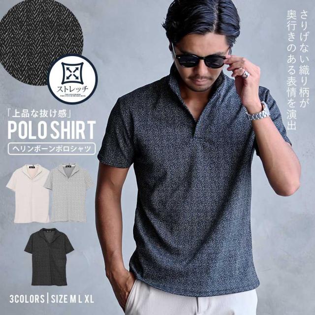 ポロシャツ メンズ 半袖 おしゃれ 半袖ポロシャツ イタリアンカラー 開襟ポロ カットソー メンズトップス ヘリンボーン 織り柄 無地見え ストレッチ きれいめ カジュアル 春 春服 夏 夏服 春夏 ホワイト ベージュ ブラック グレー M L XL LL ちょいワル 男性 男 東京 春 春服 春夏 20代 30代 40代 50代 ファッション プレゼント 誕生日 記念日 贈り物 ギフト配送について