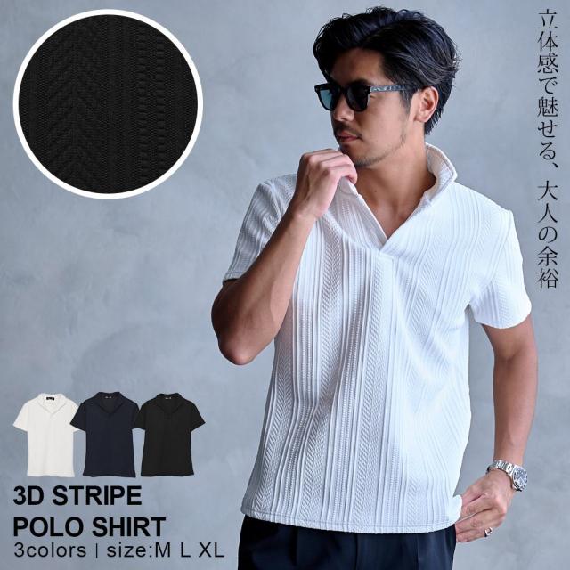 ポロシャツ メンズ 半袖 おしゃれ 半袖ポロシャツ イタリアンカラー 開襟ポロ カットソー メンズトップス ストライプ 立体的 織り柄 無地見え ストレッチ 美シルエット きれいめ カジュアル 春 春服 夏 夏服 春夏 ホワイト ネイビー ブラック 白 黒 M L XL LL ちょいワル 男性 男 東京 春 春服 春夏 20代 30代 40代 50代 ファッション プレゼント 誕生日 記念日 贈り物 ギフト配送について