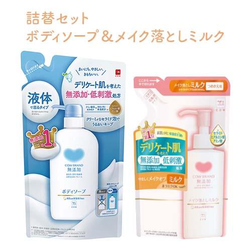カウブランド 無添加 詰替セット ボディソープ 380mL & メイク落としミルク 130mL 素肌と同じ保湿成分 低刺激処方 ボディケア スキンケア 牛乳石鹸(COW) 送料込(北海道除く)