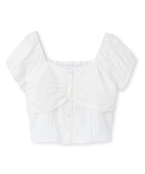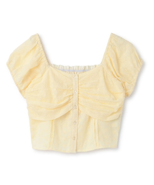 軽やかな刺繍レース生地を使用し、身頃は二重仕立てで透けにくく袖はほんのり透けるエアリーな見え感です。
