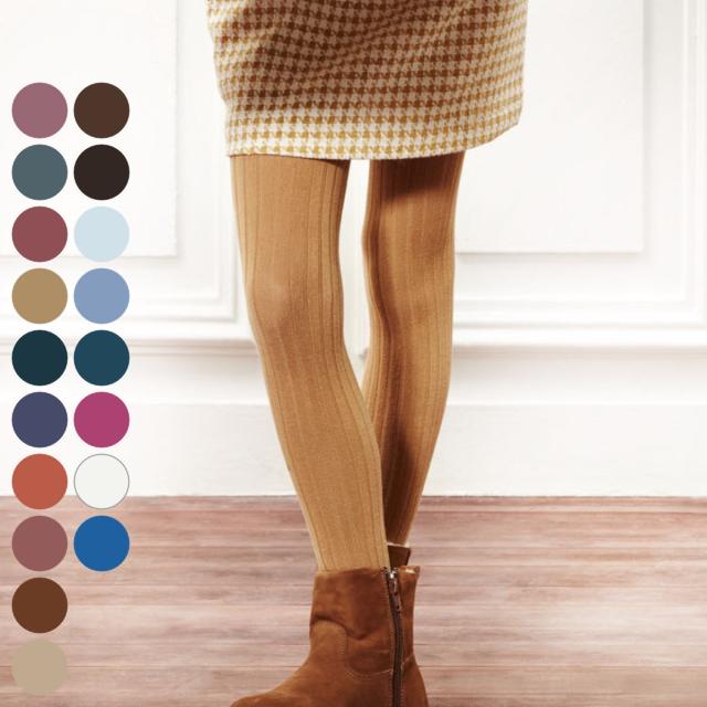 定番で使いやすく万能な、リブタイプのタイツです。いずれも発色が良く、シンプルな服装のちょっとしたアクセントの差し色にもピッタリなアイテムです。