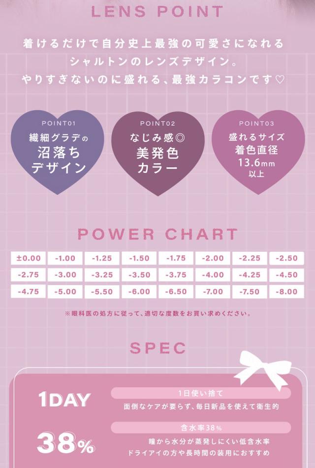 ■度数(PWR):±0.00、-1.00〜-5.00(0.25STEP)、-5.50〜-8.00(0.5STEP)