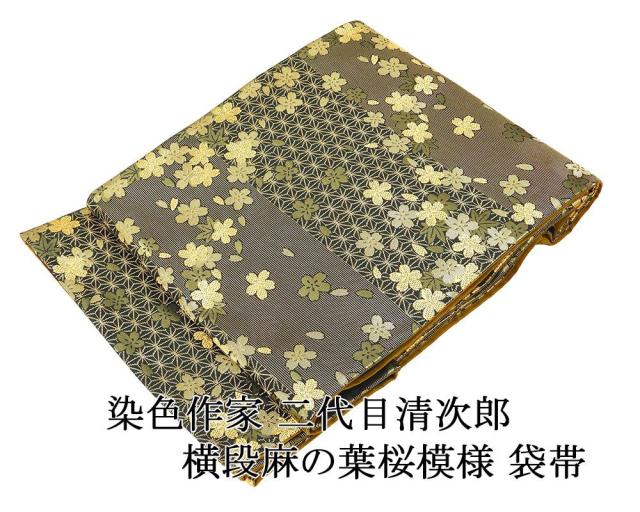 袋帯 正絹 染色作家 二代目清次郎 横段 麻の葉 桜 礼装用 フォーマル 美品 中古 リサイクル 仕立て上がり 着物 g4265