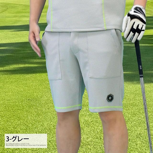 送料無料 ゴルフパンツ メンズ ゴルフウェア GIORNO SEVEN ジョルノセブン ハーフパンツ ショートパンツ 短パン 春夏 ショーツ メッシュ編み ストレッチ ボトムス イージー ゆうパケ