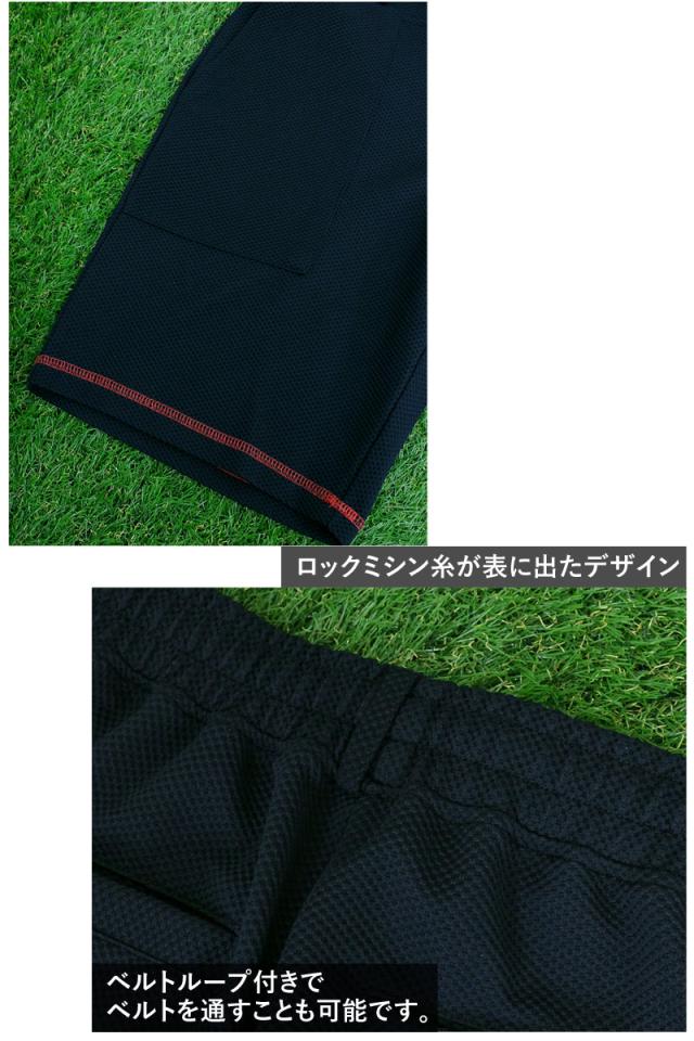 ゴルフハーフパンツ。ロックミシン糸が表に出たデザイン。