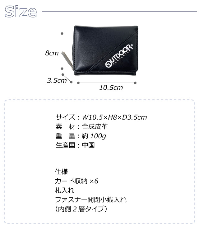 財布 中学生 男子 OUTDOOR PRDUCTS アウトドアプロダクツ コンパクト 三つ折り財布 ods-0082 3つ折り財布 コンパクト 高校生 さいふ おしゃれ 小学生 ミニ財布 おすすめ ファスナー財布 子供 小学校 高学年 人気 小さめ 財布 ミニ 財布 かっこいい キッズ財布 ジュニア