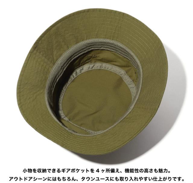 肌当たりのよいコットンナイロンリップストップ素材を使用した、軽やかなかぶり心地のギアポケットハット。