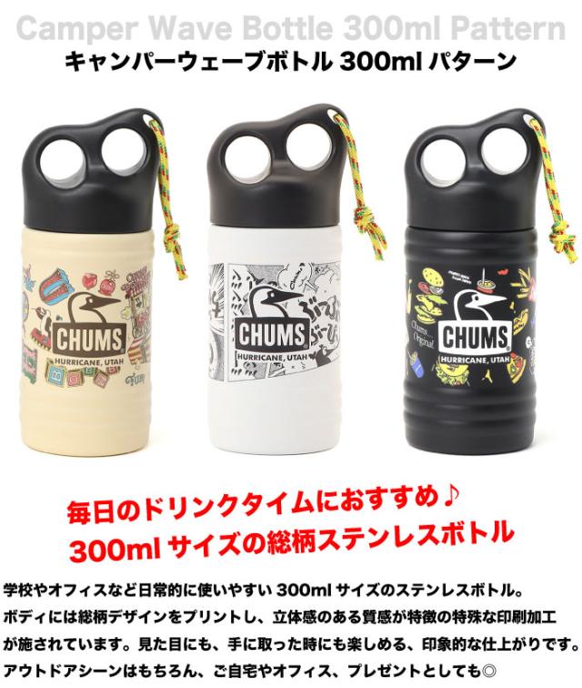 CHUMS チャムス キャンパーウェーブボトル300mlパターン 保温 保冷 水筒 タンブラー マグボトル アウトドア キャンプ スポーツ 遠足 釣り 登山 オフィス 自宅 ルームグッズ 日常 総柄 ピクニック 外出 CH62-2273