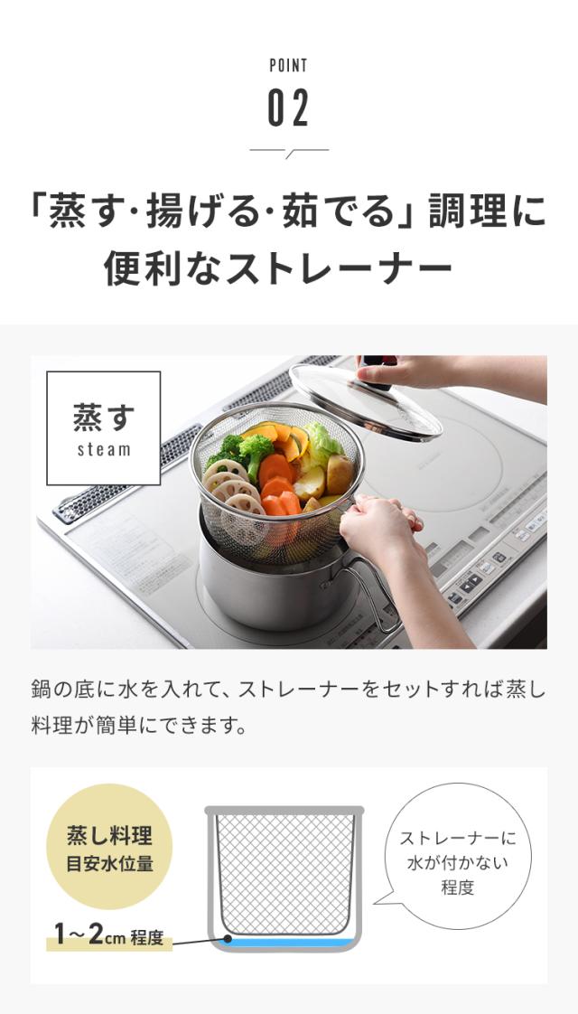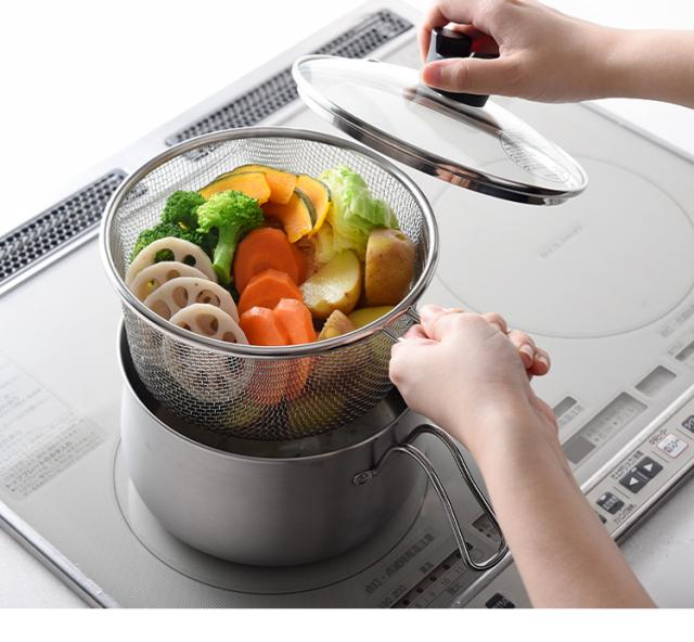 ■ストレーナーが付いて、「蒸す・揚げる・茹でる」調理が便利に!