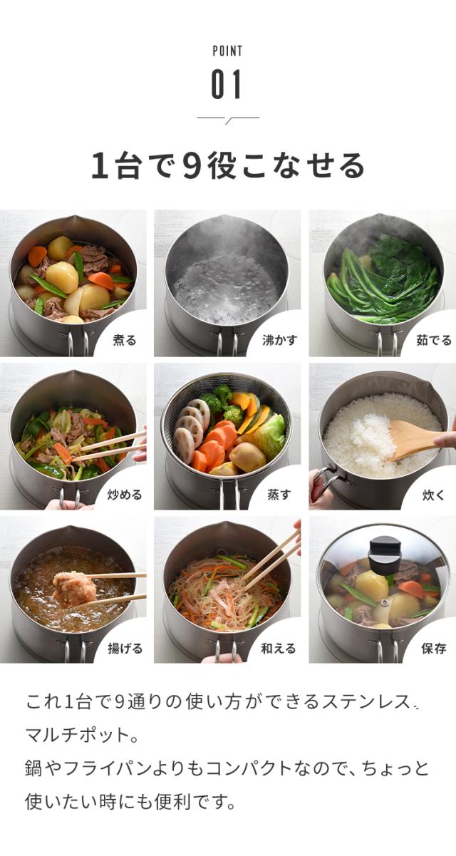 ■揚げ物から蒸し料理も簡単に、9役こなせるマルチポット。