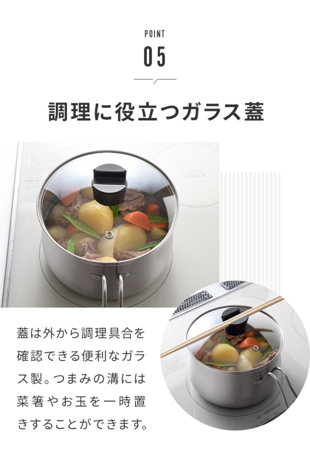 ■ガラス蓋は中が見えるので外から調理具合を確認できます。蓋のハンドル凹部に菜箸を一時置きできます。