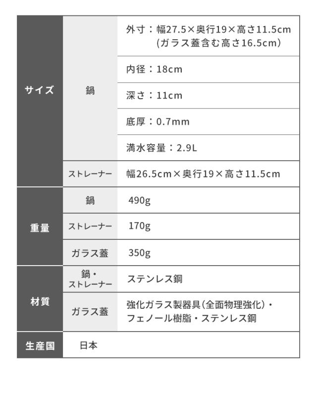 ■ガラス蓋:強化ガラス製器具(全面物理強化)・フェノール樹脂・ステンレス鋼
