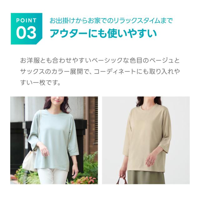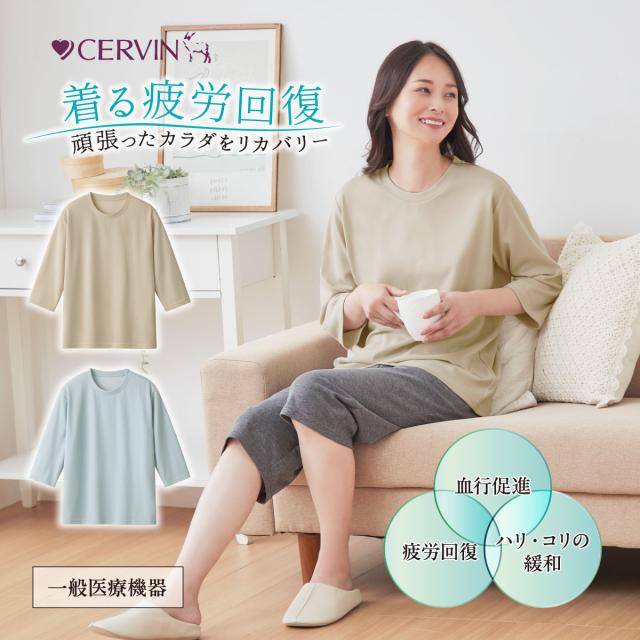 【一般医療機器】 CERVIN リカバリーケア レディースゆったり7分袖シャツ リカバリーウェア 疲労回復 血行促進 半袖 Tシャツ ベージュ サックス セルヴァン ナイトウェア ルームウェア パジャマ インナー シャツ 春夏 遠赤外線 輻射熱