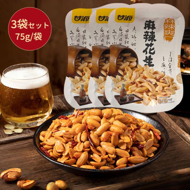 「3袋入り」麻辣ピーナッツ 75g/5小袋入り 麻辣花生 スパイシーピーナッツ マーラーピーナッツ お酒 おつまみに最適 唐辛子 本格ピリ辛おつまみ 中華菓子 おやつ 小分けタイプ 酒の肴
