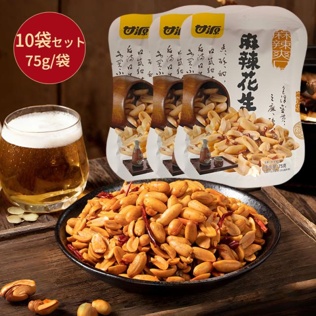 「10袋入り」麻辣ピーナッツ 75g/5小袋入り 麻辣花生 スパイシーピーナッツ マーラーピーナッツ お酒 おつまみに最適 唐辛子 本格ピリ辛おつまみ 中華菓子 おやつ 小分けタイプ 酒の肴
