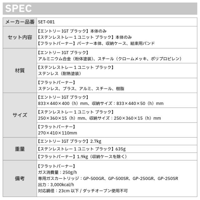 スノーピーク snow peak エントリーIGTフラットバーナーセット テーブル キャンプ アウトドア SET-081
