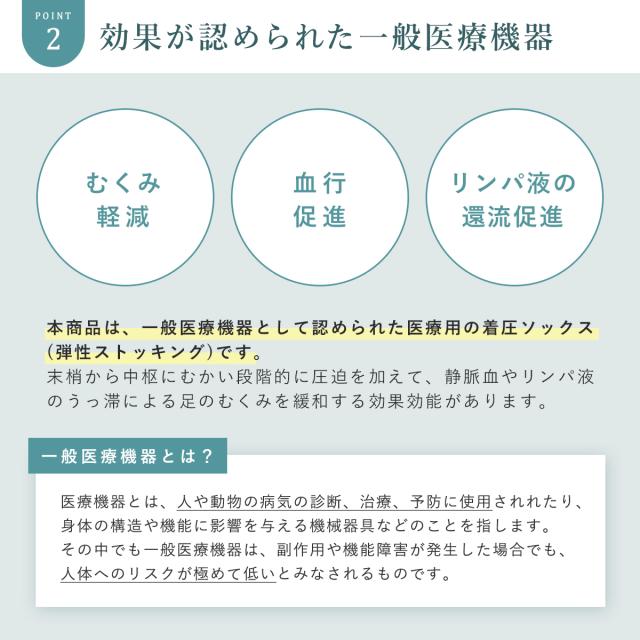 弾性ストッキングの目的:四肢の静脈血、リンパ液のうっ滞を軽減または予防する等、静脈還流の促進