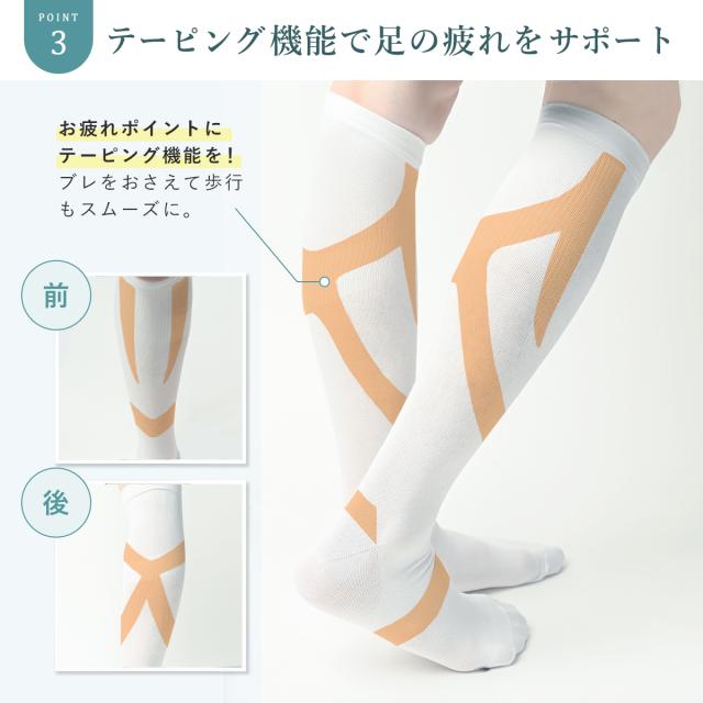 ふくらはぎの横・後ろのテーピング機能により疲れポイントをしっかりとサポート!足の疲れ防止に!