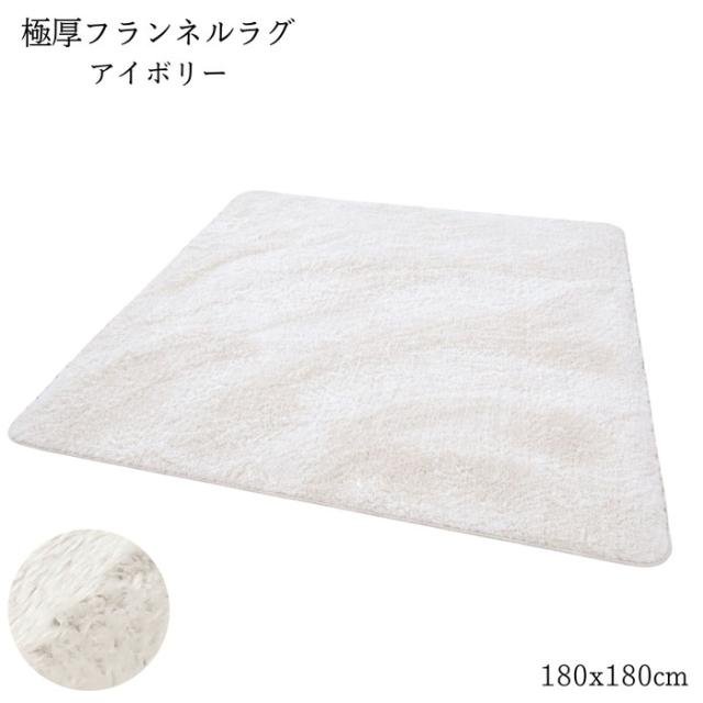 極厚フランネルラグ 180x180cm 2畳用 アイボリー 25mm高反発ウレタン使用 裏面滑り止め