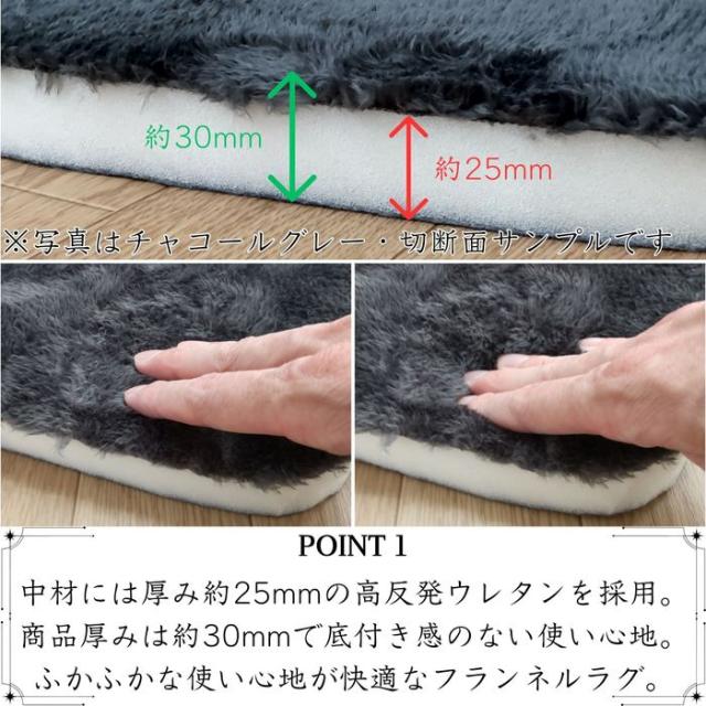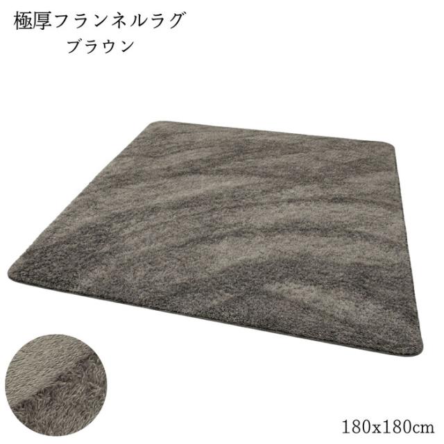 極厚フランネルラグ 180x180cm 2畳用 ブラウン 25mm高反発ウレタン使用 裏面滑り止め