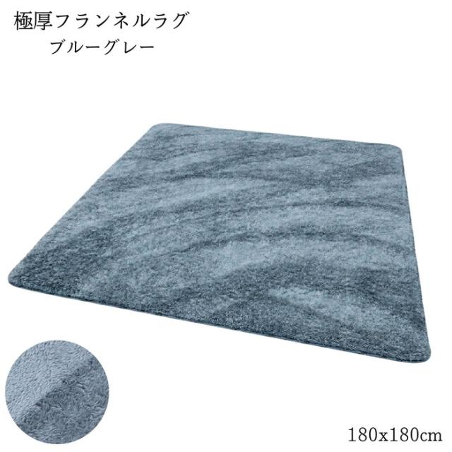極厚フランネルラグ 180x180cm 2畳用 ブルーグレー 25mm高反発ウレタン使用 裏面滑り止め