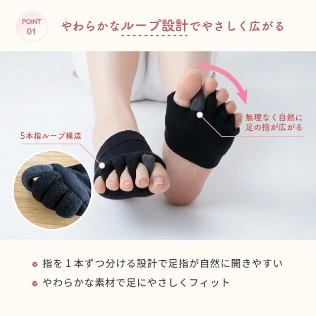 5本指ループ構造により、無理なく自然に足の指が広がります。