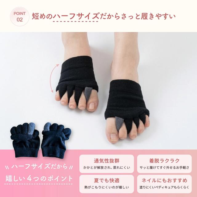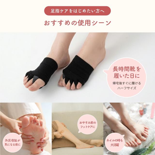 ● 足指をやさしく広げてラクラクフットケア|足指解放ソックス(ハーフサイズ・男女兼用)