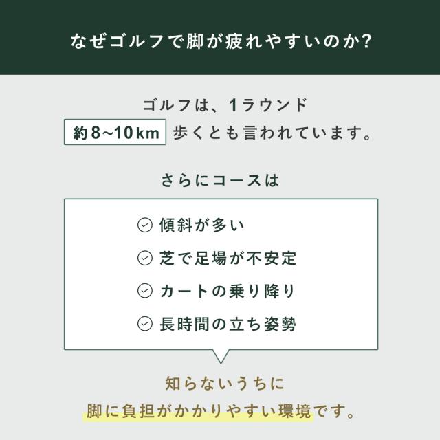 長時間の歩行やアップダウンの多いゴルフでは、気づかないうちに脚に負担がかかりがち。