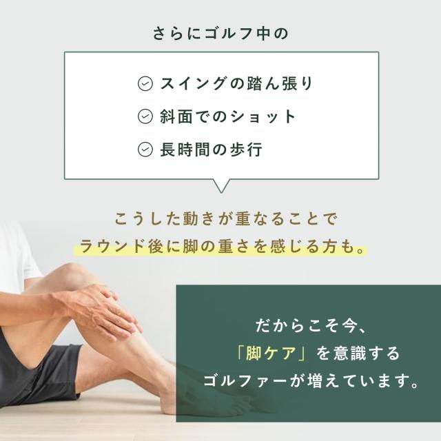 ラウンド後の脚の重だるさや疲れを感じる方へ。
