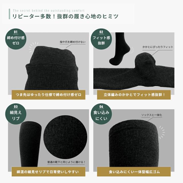 → ソックスと一体化した幅広ゴムで、跡が残りにくい