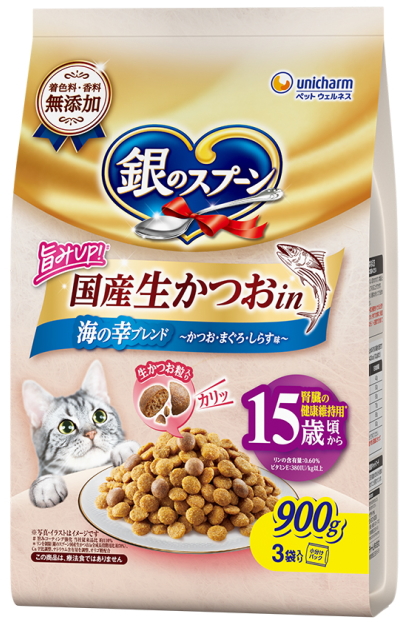 ユニチャーム 銀のスプーン 国産生かつおin 15歳頃から 海の幸ブレンド 900gx9個(ケース販売)