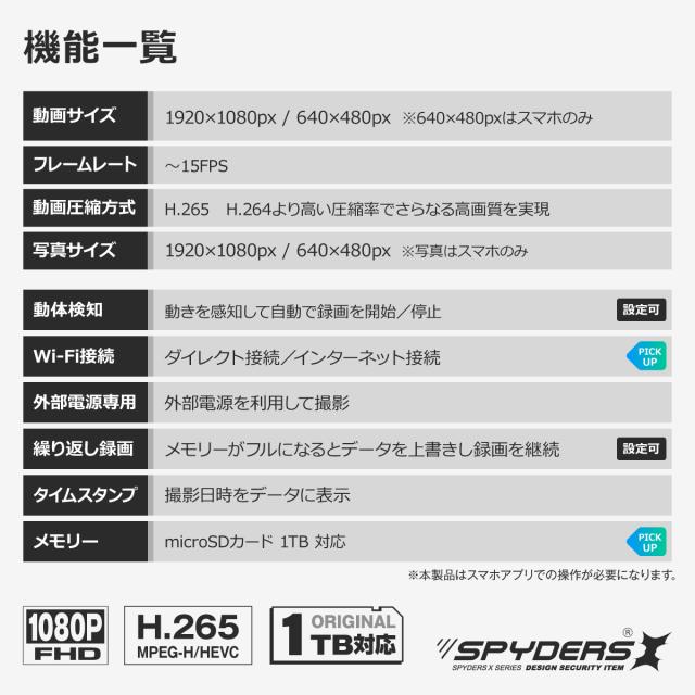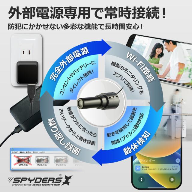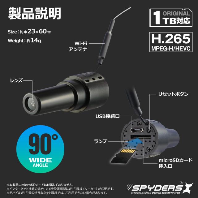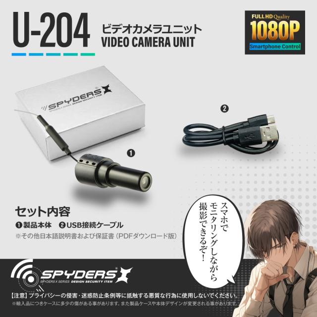 スパイダーズX スパイカメラ 1080P ビデオカメラユニット 小型カメラ [U-204] 防犯カメラ Wi-Fi インターネット接続 スマホ 1TB対応