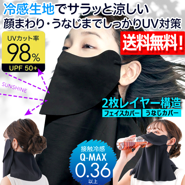 接触冷感レイヤー式UV&クールフェイスカバー Q-MQX0.36 UVカット 夏の日射し 初夏 真夏 残暑 紫外線 マスク デコルテ 首筋 顔周り