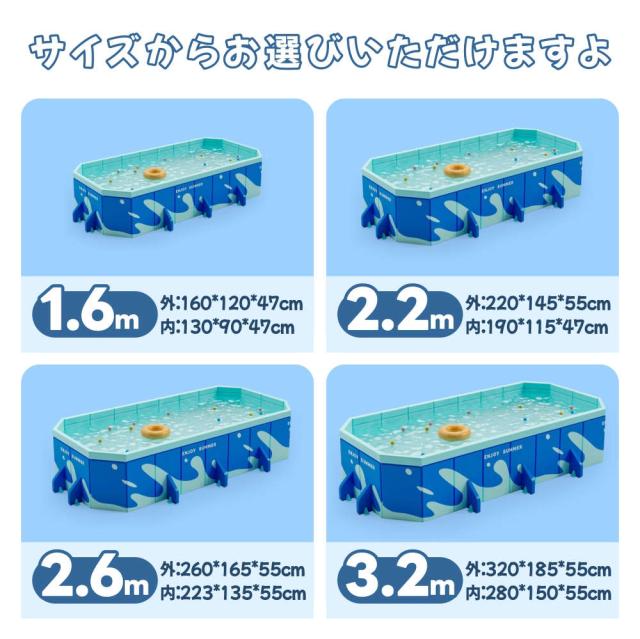 最新 折りたたみ プール 大型 プール 折り畳み式 プール 子供用 ビニールプール 1.6m 2.2m 2.6m 3.2m 水遊び フレームプール 加厚プール 家庭用プール 家庭用 大人用 キッズ ベビー 折りたたみ 収納簡単 設置簡単 庭 室内 室外 アウトドア 空気漏れ無し