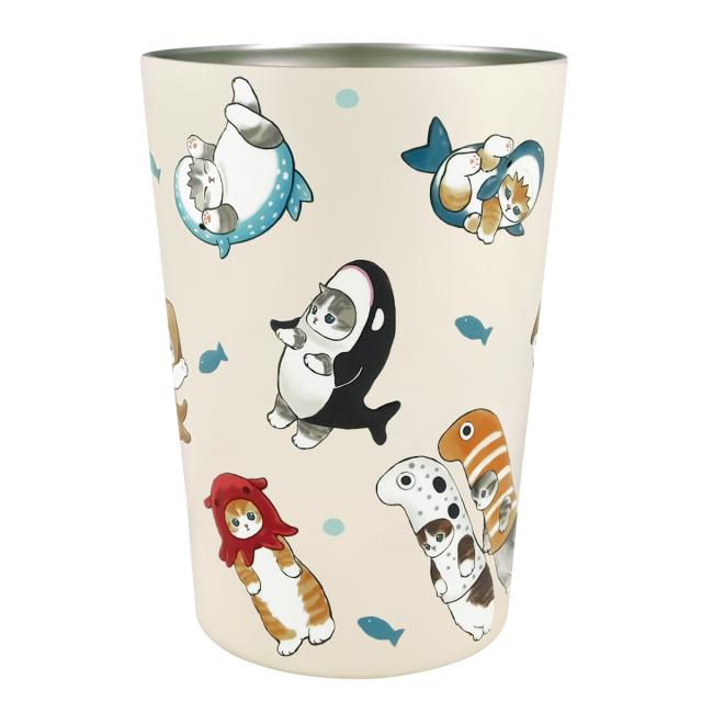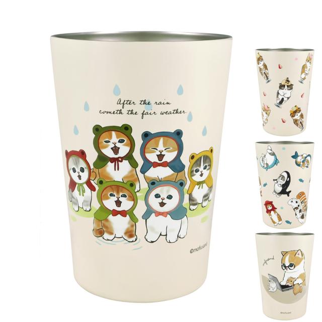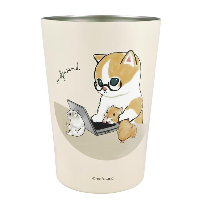 ユニークなねこのイラストがかわいい「モフサンド」のタンブラーです。ステンレス真空二重構造でドリンクの温度をキープするので、お家でまったりタイムやオフィスでのデスクワークのお供に最適です。