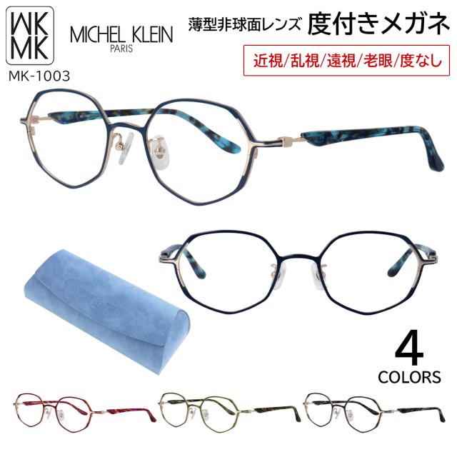 度付きメガネ 度入り 度あり ミッシェル・クラン メガネ MICHEL KLEIN MK-1003 4カラー展開 軽量 正規品 チタンフレーム 角ばったヨーロッパ調フォルム 薄型非球面レンズ 近視 乱視 遠視 老眼 度なし だて 伊達 レディース 女性 おしゃれ モード エレガンス