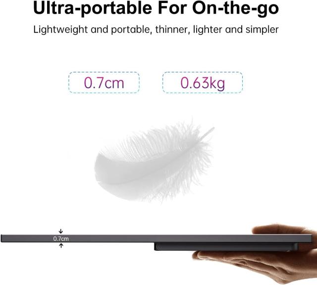 最も薄い部分で約7.5mm、14インチポータブルディスプレイ本体だけで550gという軽量設計なので、出張や外回りのときなどの携帯用にもおすすめです。