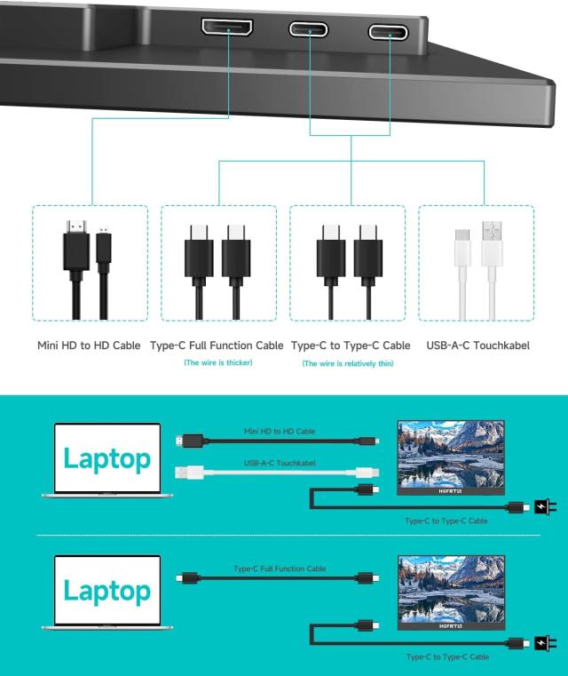 Mini HDMI入力とTYPE-C入力に対応した使い勝手のよい入力系統を備えるポータブルモニターてす。