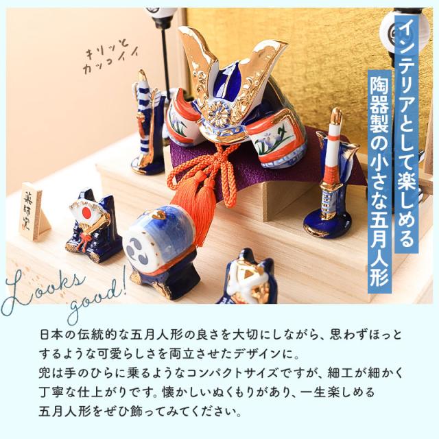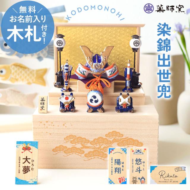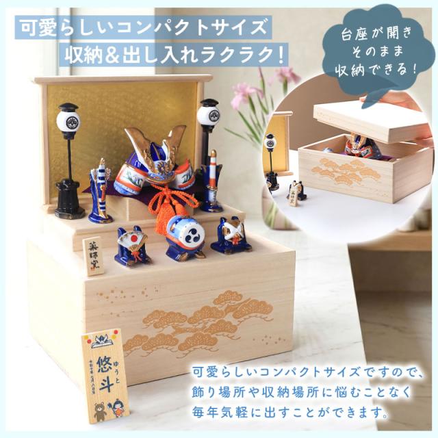 五月人形 コンパクト おしゃれ 名前 札 付き 兜 名入れ無料 こどもの日 染錦出世兜 薬師窯 兜飾り 収納兜飾り かっこいい 端午の節句 陶器 小さめ ミニ 子供の日 5月人形 桐箱 名札 名前入り 名入れ 無料 最新 今どき 小さい 送料無料