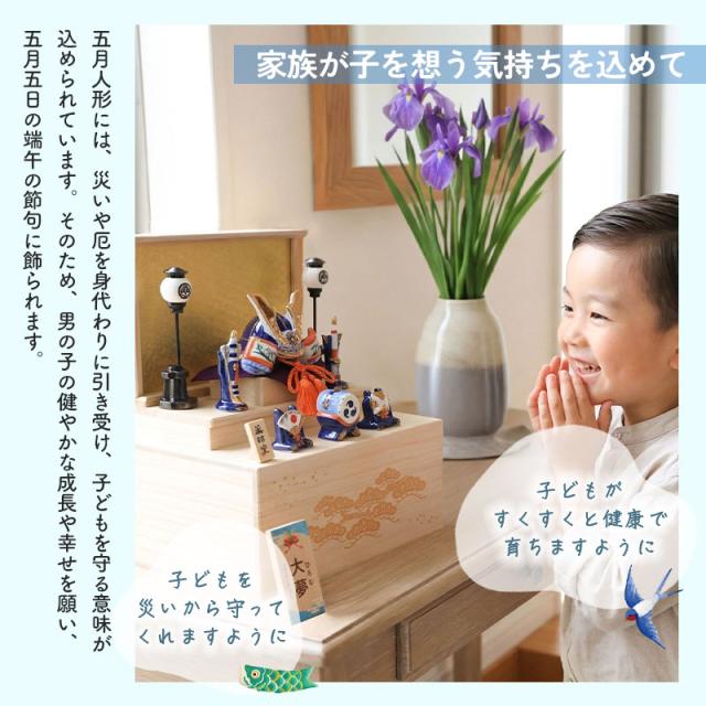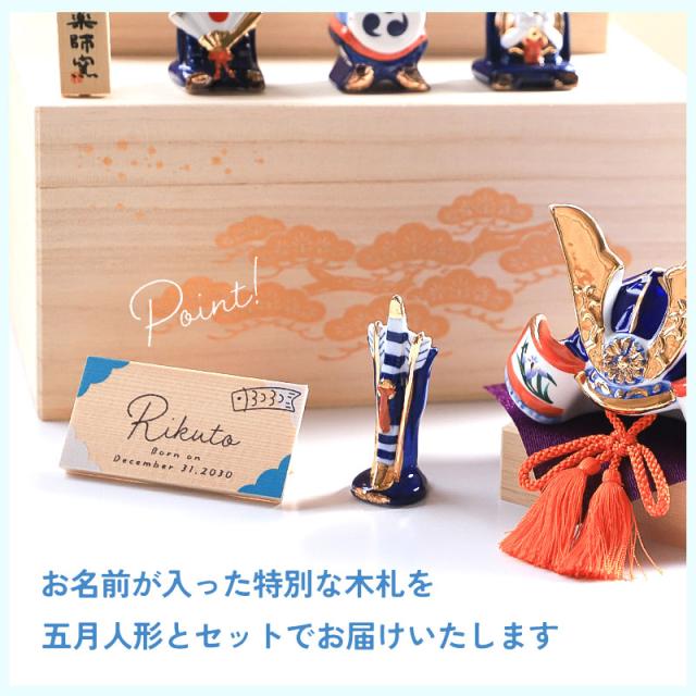 | 材質 | 五月人形:陶器 桐箱・木札:天然木製 |