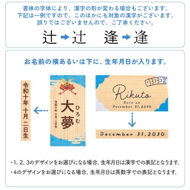 お子さまのお名前と生年月日を入れた、世界にひとつだけの木札。