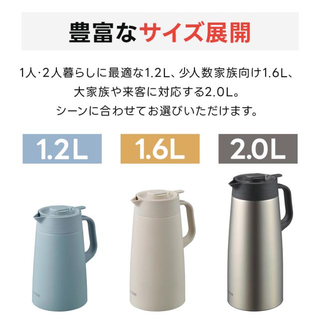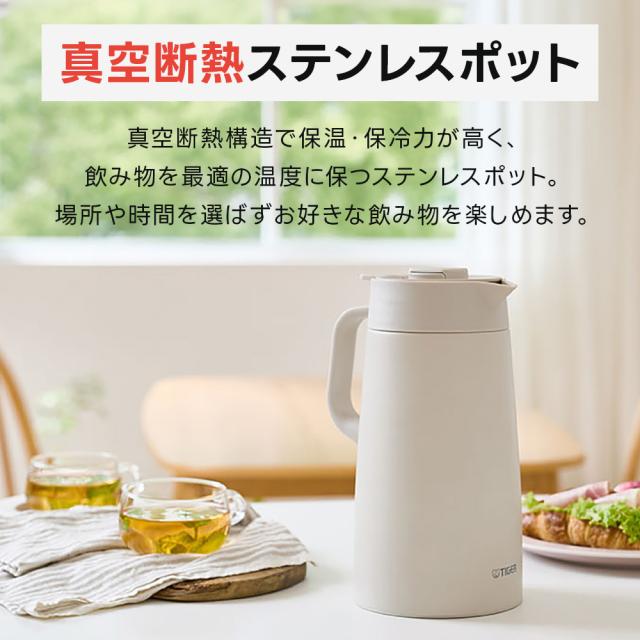 タイガー魔法瓶 真空断熱ステンレスポット PWR-A200 2.0L 保冷 保温 広口 ワンタッチ 丸洗い おしゃれ 卓上ポット 保温ポット 省エネ