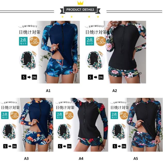 UVカット 体型カバー 水着 レディース 長袖ラッシュガードセット 2点セット UPF50+ 大きいサイズ 20代30代40代50代 紫外線対策