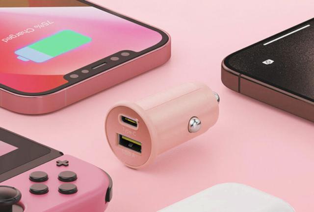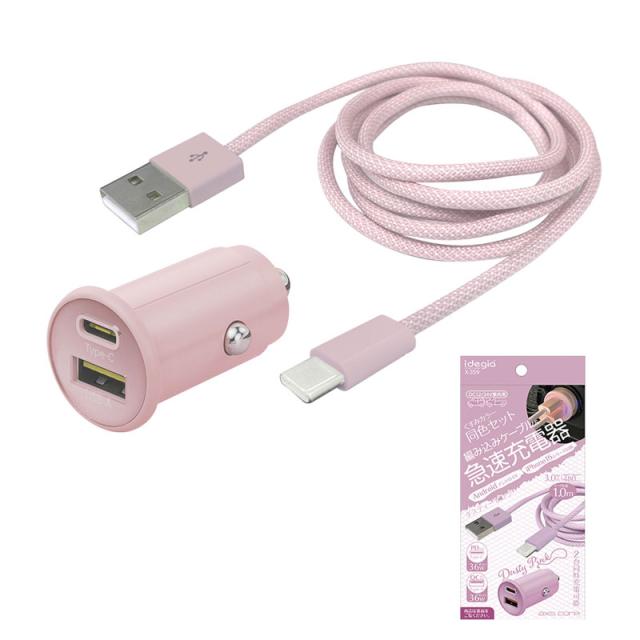 くすみカラー充電器 ケーブル1.0m A+C ダスティーピンク 急速充電 充電ケーブル スマホ充電 DC12V/24V 最大出力36W アークス X-359