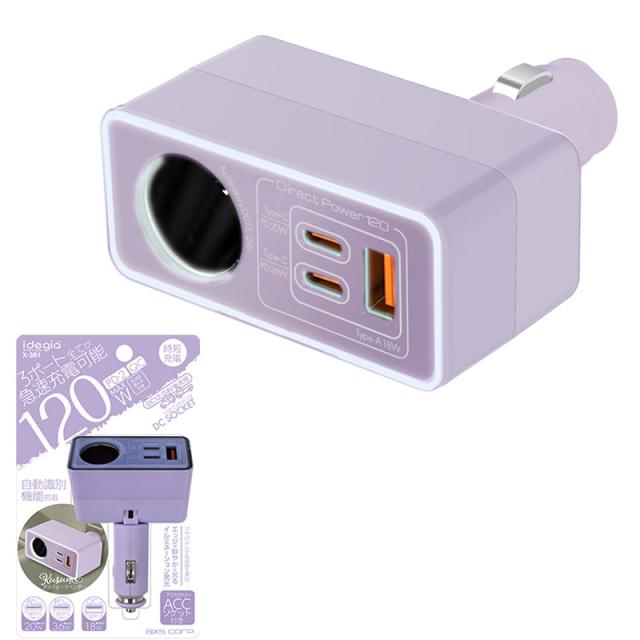 DCソケット 充電器 Type-C×2 USB-A ダスティピンク DC12V/24V 最大120W 急速充電 3台同時充電 ICヒューズ内蔵 アークス X-381